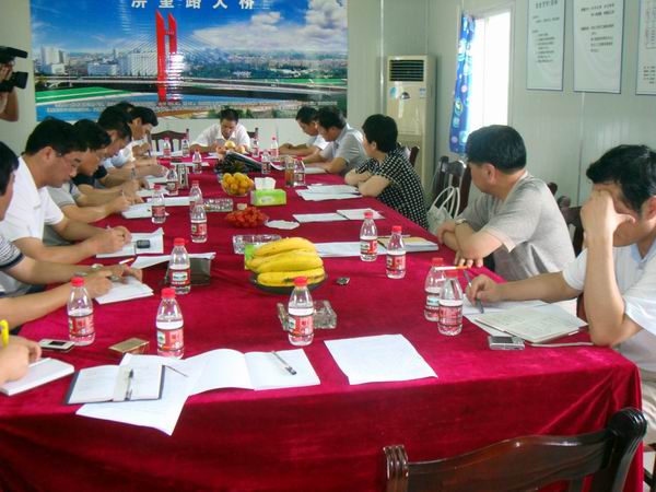 李書記一行首先深入施工現(xiàn)場,一邊詢問工程進(jìn)展情況,一邊查看和指導(dǎo)。隨后在淠望路項目部會議室聽取了六安市建委、項目監(jiān)理單位、施工單位對淠望路大橋項目管理、施工進(jìn)度等情況的匯報。李書記在肯定項目前期工作成績的同時,對淠望路大橋后期施工工作提出了具體要求和指導(dǎo)意見:一、工程項目重要性。淠望路大橋乃是六安市重點建設(shè)工程之一,地處城市核心地帶,是貫通新老城區(qū)的一條重要聯(lián)系紐帶,建成后將成為六安市標(biāo)志性的建筑;二、目標(biāo)要明確。淠望路大橋的建設(shè)是六安人民關(guān)注的焦點,政治和社會意義重大,市委市政府高度重視。要求施工單位要加強(qiáng)質(zhì)量控制,加快工程進(jìn)度,在施工各個環(huán)節(jié)力求做到科學(xué)化、規(guī)范化、程序化、標(biāo)準(zhǔn)化,要優(yōu)質(zhì)、高效、安全、按期完成淠望路大橋施工任務(wù),力爭奪取“黃山杯”;三、措施要有效。要求施工單位加大機(jī)械設(shè)備和人員的投入,并認(rèn)真落實各項措施,確保組織管理到位,現(xiàn)場技術(shù)力量到位,既定進(jìn)度到位,安全管理到位,質(zhì)量控制工作到位,爭取把淠望路大橋建成優(yōu)質(zhì)工程,早日向六安市人民交上一份滿意的答卷。最后,李書記對安徽路橋在淠望路大橋建設(shè)中做出的努力給予了高度的評價。
