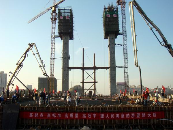 17日下午1530分至19日凌晨530分,經(jīng)過現(xiàn)場百余名一線工人和項目部全體技術(shù)人員一天兩夜無間斷連續(xù)作業(yè)38個小時的艱苦奮戰(zhàn),主橋85m邊跨混凝土一次性現(xiàn)澆圓滿完成,這是淠望路大橋上部結(jié)構(gòu)施工的又一階段性勝利。同時,它的澆筑完成也為下階段斜拉索施工及保證總工期奠定了堅實的基礎(chǔ),這是我們安徽路橋人發(fā)揚“特別能吃苦、特別能戰(zhàn)斗”精神的再一次生動體現(xiàn)。
