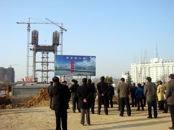 1228下午,六安市委書(shū)記湯林祥、市長(zhǎng)張韶春帶領(lǐng)市四大班子領(lǐng)導(dǎo)冒著嚴(yán)寒來(lái)到淠望路大橋施工現(xiàn)場(chǎng),視察大橋建設(shè)情況。