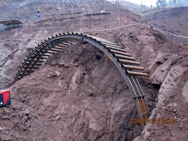 惡劣的自然環(huán)境和復(fù)雜的地方問題,使雨壩隧道進(jìn)洞前的籌備工作異常艱辛。項目經(jīng)理劉曉晗和總工胡學(xué)祥數(shù)次趕赴業(yè)主等單位,反映問題和請求解決問題,并請來各級安全監(jiān)理到施工現(xiàn)場協(xié)商施工隊住房場地的選擇點。地方辦負(fù)責(zé)人邵子俊同志幾乎整日奔波于縣指揮部、鄉(xiāng)政府、派出所、供電所之間……。功夫不負(fù)有心人,在大家多方面的努力下,最終住房場地通過了監(jiān)理安全的驗收,其他標(biāo)段因村民堵路導(dǎo)致的交通問題、拆遷問題、搶挖煤問題得到解決,施工用電也通暢無阻。與此同時,施工隊方面完成所有機(jī)器設(shè)備的安裝和調(diào)試工作,前期所需鋼材均已全部進(jìn)場,各班組人員基本到位。現(xiàn)已完成左洞邊仰坡開挖和防護(hù),套拱施工、管棚施工正加班加點進(jìn)行施工,右洞也已進(jìn)入套拱施工階段;所有施工工序正有條不紊的進(jìn)行。至此,雨壩隧道進(jìn)洞前工作全部完成,同時也宣告了安徽路橋水盤項目的隧道工程取得了階段性的勝利。