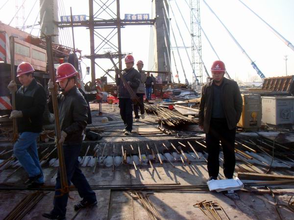 根據(jù)年前項(xiàng)目部會(huì)議計(jì)劃安排,節(jié)前應(yīng)完成主跨掛籃懸澆塊第十節(jié)段的澆筑,然而由于年底大雪天氣影響,致使原計(jì)劃有所推遲。為搶回工期,正月初六項(xiàng)目部員工便全部到崗,立即展開謀劃,組織復(fù)工。由于作業(yè)隊(duì)外地工人過年回家未能及時(shí)全部到崗,項(xiàng)目部人員在江仲明經(jīng)理的率領(lǐng)下,親自下工地抬鋼筋、穿波紋管、綁扎鋼筋,干起了體力活,補(bǔ)上了未到崗工人的缺,使施工速度明顯加快。21日晚,在大家的共同努力下,主跨第十節(jié)段混凝土順利澆筑完畢。在節(jié)后的六安市建筑工地中我部率先完成了混凝土澆筑工作,在虎年的新春里開了一個(gè)好頭。六安市《大別山晨刊》報(bào)以《部分工人未到崗技術(shù)人員頂上去——新春伊始淠望路大橋搶抓工期》為題在頭版對(duì)我部的事跡進(jìn)行了專題報(bào)道。