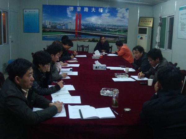 327晚,淠望路大橋項(xiàng)目部召開了全體職工會議,傳達(dá)學(xué)習(xí)公司五屆二次職代會精神,并就如何貫徹落實(shí)好會議精神進(jìn)行了熱烈討論。會議由項(xiàng)目經(jīng)理江仲明主持。