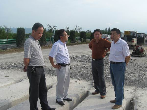殷書記首先視察了我部于15日順利完成瀝青施工的無量溪大橋,詳細詢問和了解了原橋梁施工方案以及橋面橡膠瀝青的鋪筑情況,并要求在后續(xù)的施工過程中要繼續(xù)嚴把質(zhì)量關(guān),確保廣祠高速能夠成為一條質(zhì)量經(jīng)得起考驗的改建工程。隨后殷書記又來到正在施工的封閉路段,勘察了正在進行的橋梁施工,詢問了我部的施工計劃,并叮囑了在橋梁施工中要注意的一些問題。