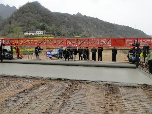 自3月24日我部成功實施橋面鋪筑試驗段施工以來,經(jīng)過兩天的努力,現(xiàn)場技術(shù)人員、設(shè)備操作手和施工工人積極協(xié)調(diào)配合,橋面鋪筑的進度明顯加快,日完成橋面鋪筑施工80米,這標志著宜巴09標橋面系施工進入快車道。