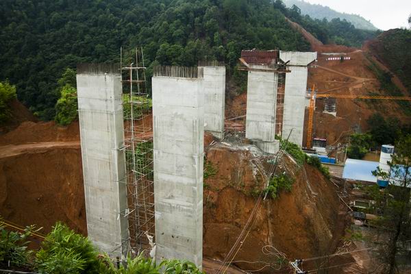 薄壁墩澆筑搶出來了,現(xiàn)在他們的重點(diǎn)又轉(zhuǎn)入到讓他們夜不能寐,茶飯無味,而進(jìn)度一直滯后的合江口四橋的下部構(gòu)造施工中。
