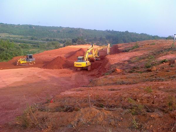 我部施工標段全長28公里,項目部將在永豐和吉水兩縣分別設立一座水穩(wěn)拌合站及一座瀝青拌和站。按照業(yè)主要求,8月份完成水穩(wěn)拌合站架設,10月份完成瀝青拌合站架設。項目部已經(jīng)定出倒排工期計劃表。目前在永豐縣的“一白一黑”兩站已經(jīng)確定,水穩(wěn)拌和站已具備架設及備料條件。吉水縣我標段所處位置多為山地,且大部分為公益林,經(jīng)過慎重選擇后,選定了一塊約50畝的山林地作為兩站場地。但此處土方量較大,場地整平土方量經(jīng)測算約8萬方。項目部將充分利用晴好天氣,加班加點,計劃10個工作日完成場地整平。