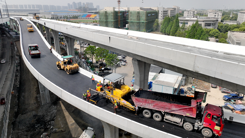 互通匝道瀝青的攤鋪完成,為如期通車奠定了堅實基礎,方興大道與宿松路兩條快速路“空中互聯(lián)互通”即將成為現實。
