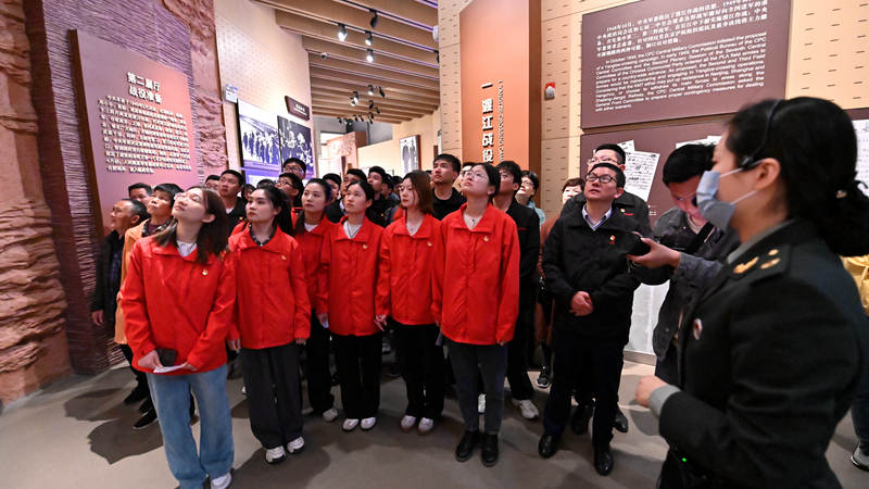 “與黨同心,黨旗所指就是團(tuán)旗所向;與企同心,交通強(qiáng)國就是前進(jìn)號(hào)角……”勝利塔下,青年們面向團(tuán)旗,發(fā)出激昂高亢的誓言,表達(dá)對(duì)黨忠誠的決心,對(duì)公司高質(zhì)量發(fā)展的信心。在展館內(nèi),青年們緊跟講解員的步伐,在一幅幅歷史照片、一件件陳列文物中重溫渡江戰(zhàn)役那段波瀾壯闊的革命歷史,學(xué)習(xí)革命先烈們的英勇事跡,并在紀(jì)念館大廳“勝利之師”雕像下重溫了入團(tuán)誓詞。