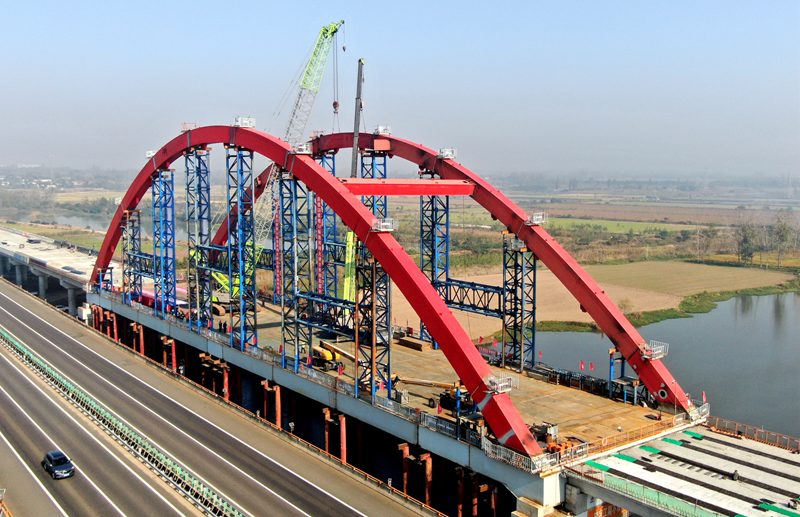 10月26日,伴隨著最后一節(jié)拱肋緩緩吊裝落位,G36寧洛高速蚌明改擴建01標項目池河特大橋主橋拱肋順利合龍,標志著該項目重點控制性工程建設再次取得突破性進展。
