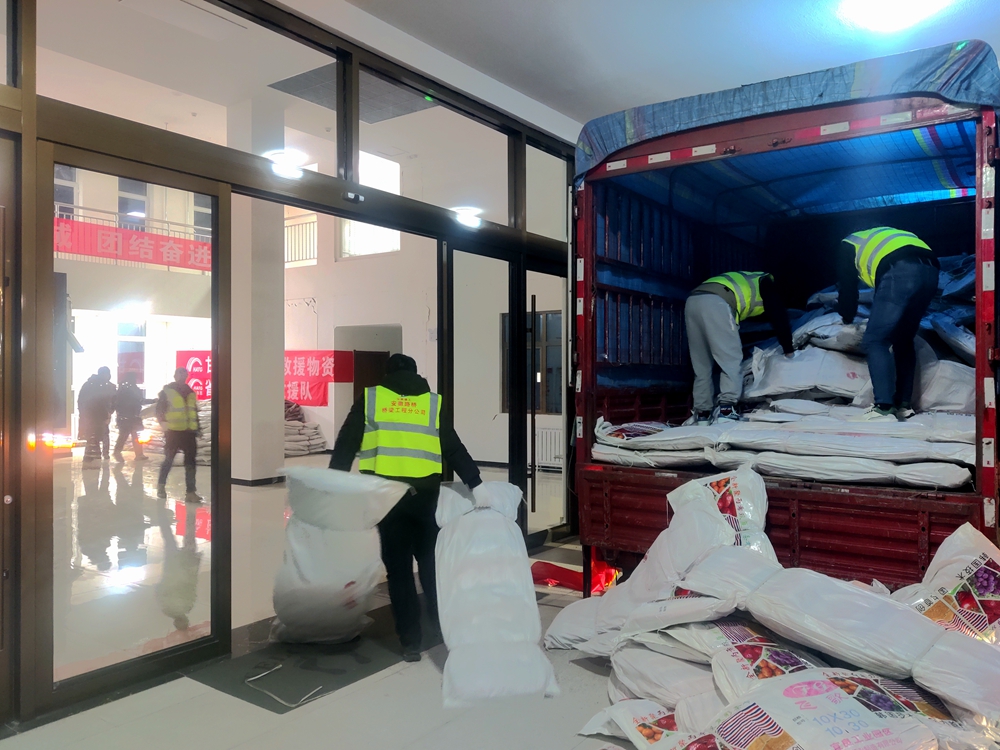 距積石山縣地震震中僅21公里的永靖縣劉家峽水庫楊塔鄉(xiāng)段環(huán)庫公路先后發(fā)生山體坍塌堵塞,嚴(yán)重阻礙交通出行。項(xiàng)目部在與當(dāng)?shù)卣〉寐?lián)系后緊急出動,第一時間趕往現(xiàn)場開展清掃工作,歷經(jīng)4小時作業(yè)將落石全部清理完畢,確保道路通暢。項(xiàng)目部所在的楊塔鄉(xiāng)勝利村部分房屋出現(xiàn)大裂縫,為保障村民人身安全,項(xiàng)目部主動聯(lián)系有需要的村民到項(xiàng)目工人生活區(qū)進(jìn)行取暖和避險。在得知積石山縣地震災(zāi)區(qū)缺少彩條布及篷布等緊急物資時,項(xiàng)目迅速籌集采購彩條布、篷布共計(jì)50000平方米,并連夜送往災(zāi)區(qū)以備使用。