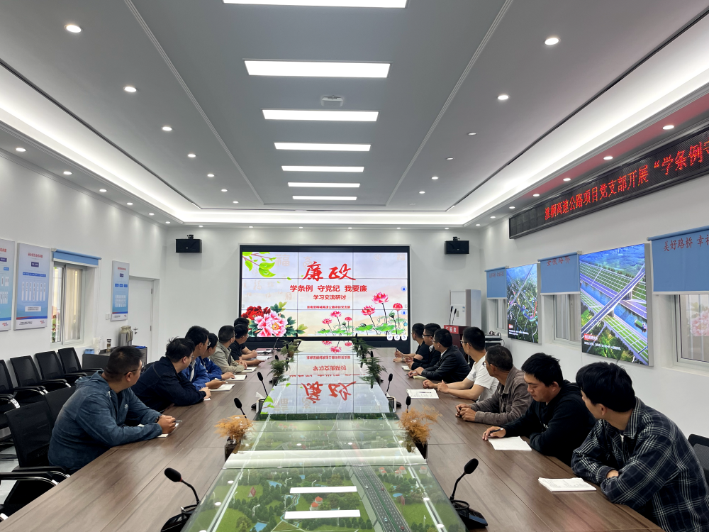 淮桐高速項目黨支部開展主題為“學條例 守黨紀 我要廉”交流研討活動,項目黨員分享黨紀學習教育心得,筑牢思想底線,做到心有所畏、言有所戒、行有所止。