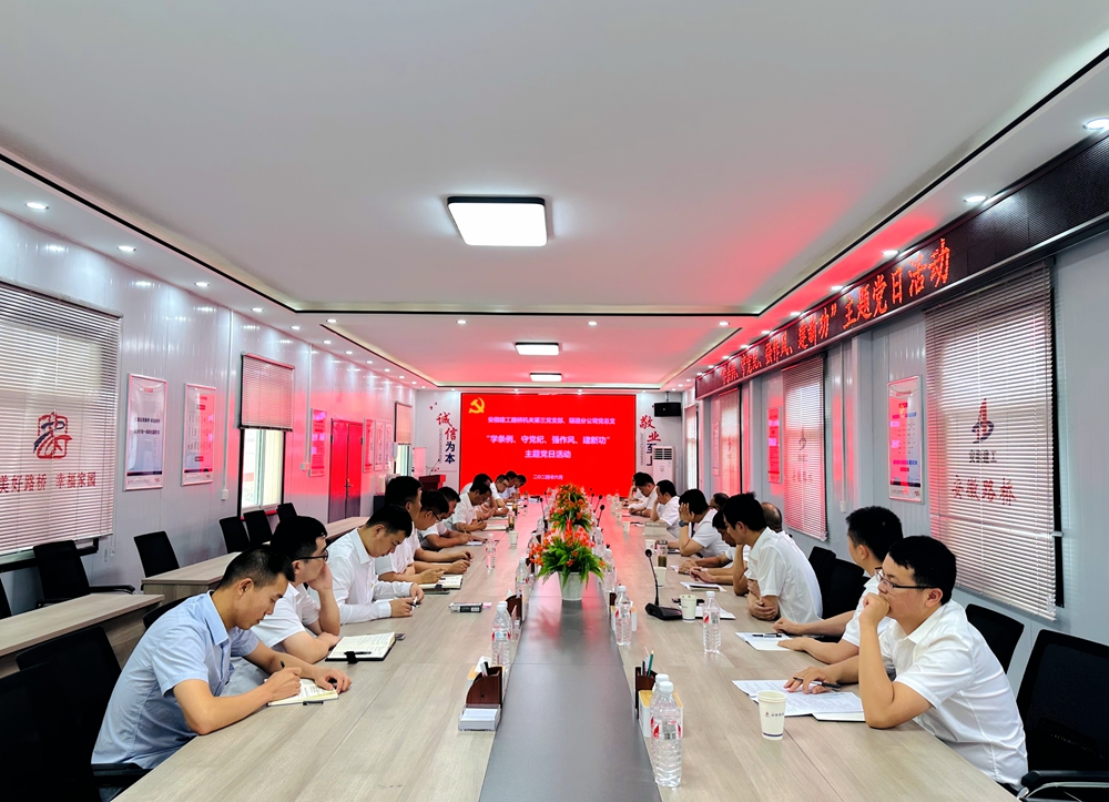 機(jī)關(guān)第三黨支部黨員,隧道分公司領(lǐng)導(dǎo)班子、機(jī)關(guān)各部門負(fù)責(zé)人,淮南片區(qū)項(xiàng)目經(jīng)理及淮桐高速淮南段路基4標(biāo)全體黨員和團(tuán)員青年代表參加活動。