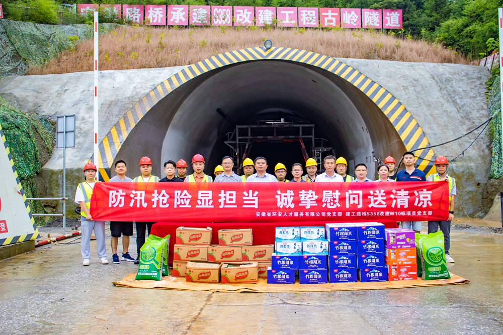 7月14日下午,共青團(tuán)池州市委副書記、市青聯(lián)主席蔣業(yè)健帶隊到公司承建的S358改建W10標(biāo)古嶺隧道施工現(xiàn)場,開展“防汛搶險顯擔(dān)當(dāng) 誠摯慰問送清涼”活動,看望慰問奮戰(zhàn)在施工一線的建設(shè)者們,叮囑要科學(xué)安排施工和休息時間,并送來防暑降溫物資。