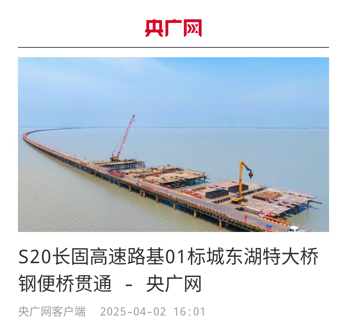 【央媒聚焦】央廣網(wǎng)等主流媒體關(guān)注報(bào)道S20長(zhǎng)固高速路基01標(biāo)城東湖特大橋鋼便橋貫通