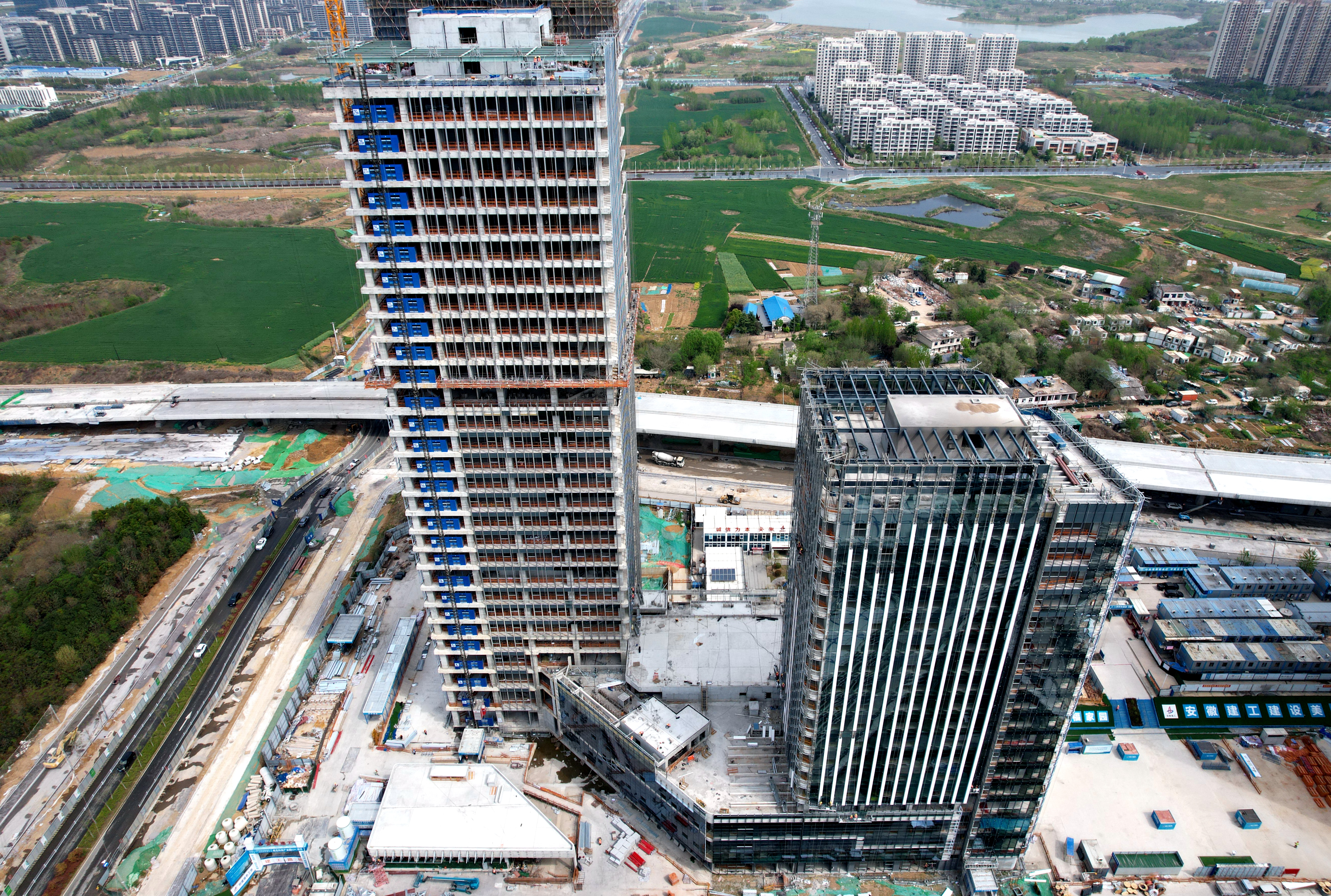 當(dāng)前,項(xiàng)目二期A2、A3樓幕墻玻璃安裝超過(guò)90%,A4樓幕墻玻璃安裝超50%。