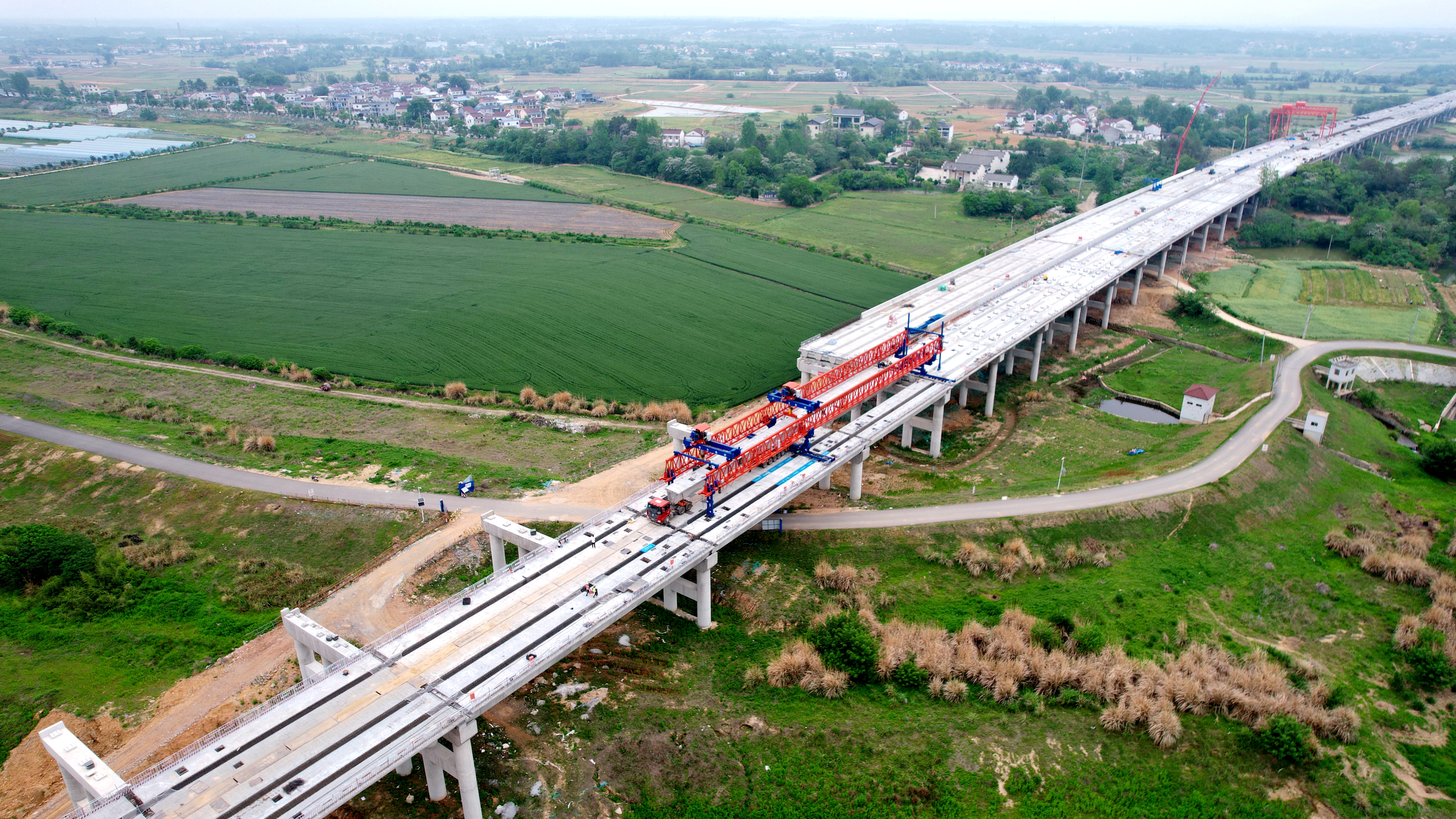 皖水河特大橋全長3.59km,橫跨皖水河、梅河、珠流河三條河流,跨越016鄉(xiāng)道及多條管道,交叉施工多。箱梁架設(shè)期間,項目部科學(xué)編制架設(shè)施工組織計劃,積極協(xié)調(diào)施工工序,創(chuàng)新采用架橋機架設(shè)箱梁,提高了架梁效率。