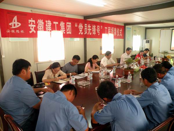 10點左右,李書記、牛書記一行來到項目會議室舉行“黨員先鋒號工程”授牌儀式。會上,公司、國內(nèi)公司及市政分公司分別就爭創(chuàng)“黨員先鋒號工程”情況做了具體匯報。會上,李書記和牛書記分別作了重要講話。李書記就項目“黨員先鋒號工程”創(chuàng)建情況談了三點感受:一是創(chuàng)建工作務實,內(nèi)容具體;二是創(chuàng)建工作主題突出,有自己的特色;三是創(chuàng)建隊伍有生機、有朝氣。就“黨員先鋒號工程”創(chuàng)建下步工作,李書記提出三點要求:一是創(chuàng)建工作要圍繞生產(chǎn)中心進行;二是要拓寬創(chuàng)建活動范圍,要逐步將活動延伸到合作隊伍和農(nóng)民工中;三是創(chuàng)建工作要建立長效機制。牛書記指出公司市政項目“黨員先鋒號工程”創(chuàng)建工作開展的很好,很有特色,對項目在人文關(guān)懷方面的工作給予了充分肯定,對項目員工表現(xiàn)出的朝氣表示欣賞,并對安全生產(chǎn)、職工生活等方面工作做提出了具體要求。