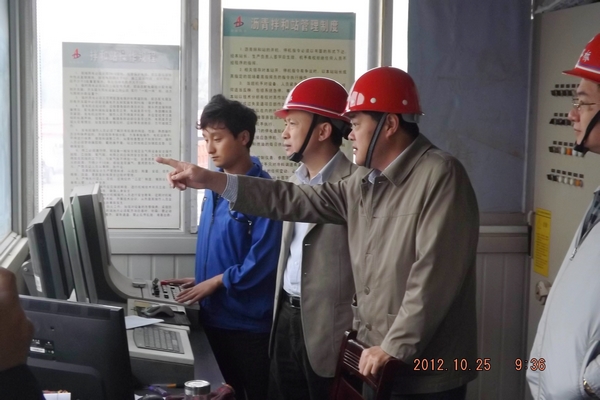 隨后,趙總一行來到該部瀝青拌合站后場,對該部瀝青場站的標(biāo)準(zhǔn)化建設(shè)給予了高度評價。趙總一行還來到瀝青拌合站操作室,饒有興趣的觀看了拌和站整個操作流程的視頻監(jiān)控畫面,詳細(xì)了解了瀝青拌合站拌合的各個環(huán)節(jié)。