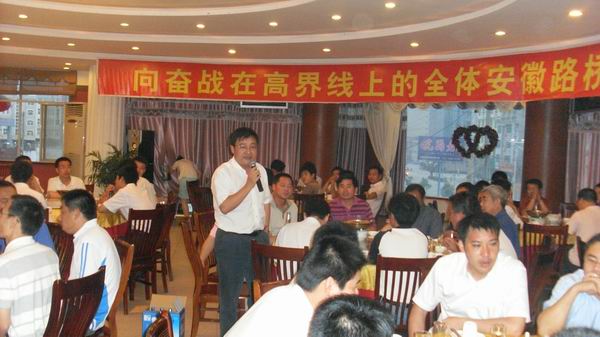 晚上,項(xiàng)目部安排慶功晚宴,公司總經(jīng)理汪衛(wèi)東攜路面公司領(lǐng)導(dǎo)班子成員,特地來到工地與大家歡聚一堂。
